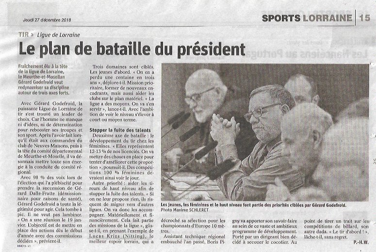 Article de presse sur la Ligue Lorraine de Tir 29 décembre 201829 décembre 2018Bruno Hervé Partager : Cliquer pour partager sur X(ouvre dans une nouvelle fenêtre) X Cliquez pour partager sur Facebook(ouvre dans une nouvelle fenêtre) Facebook J’aime ça :J’aime chargement… Similaire